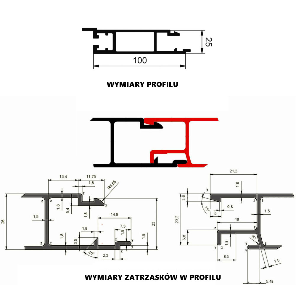 Profil do burty 25mm dolny 100mm aluminium anodowane
